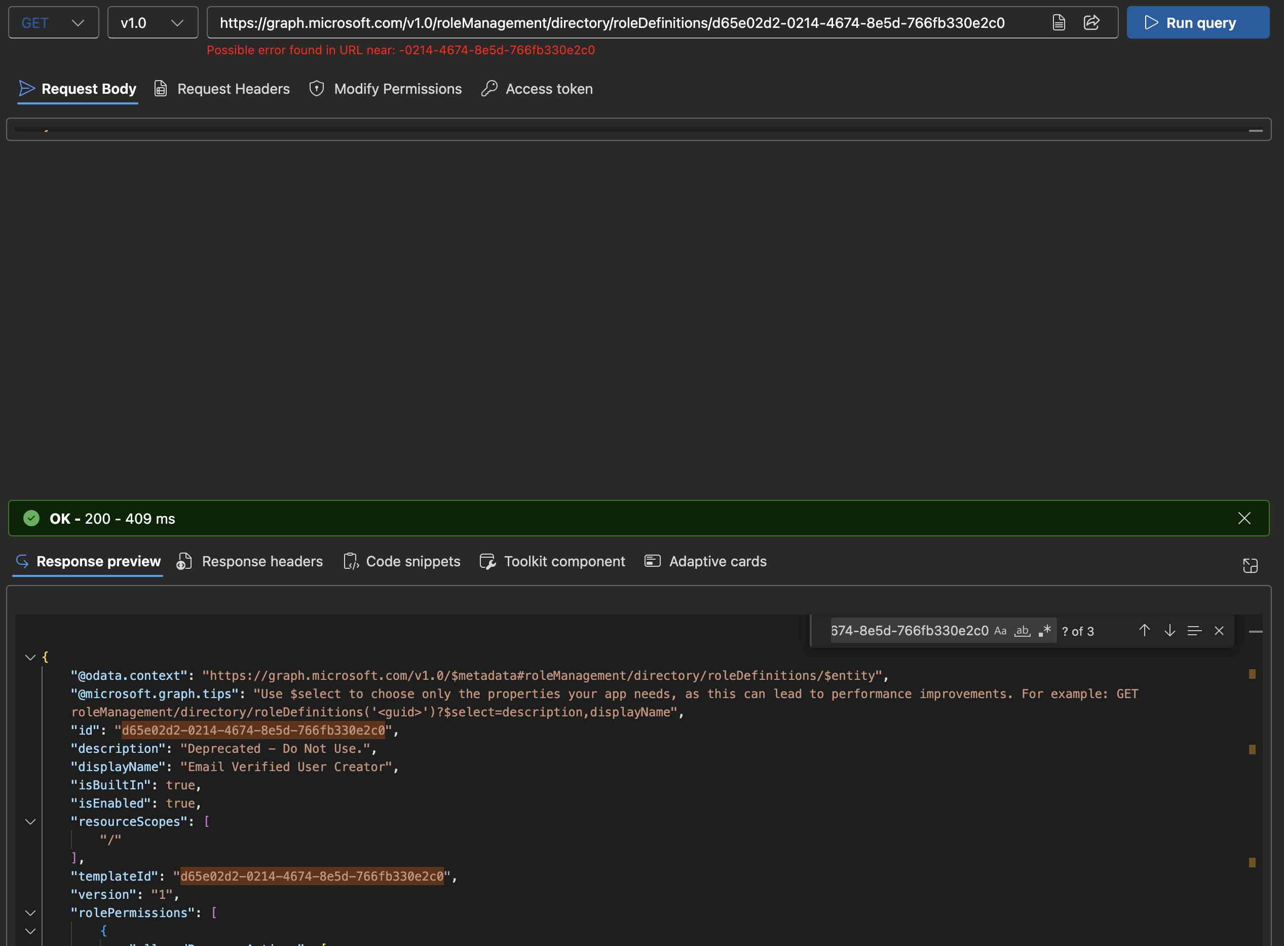 I understand that when you use the GET RoleAssignment endpoint, GET RoleDefinition by ID, or the GET RoleDefinition endpoint with a $filter query on the ID, you are still able to retrieve details of deprecated roles. This has caused some confusion about why there are still role assignment entries for these deprecated roles
