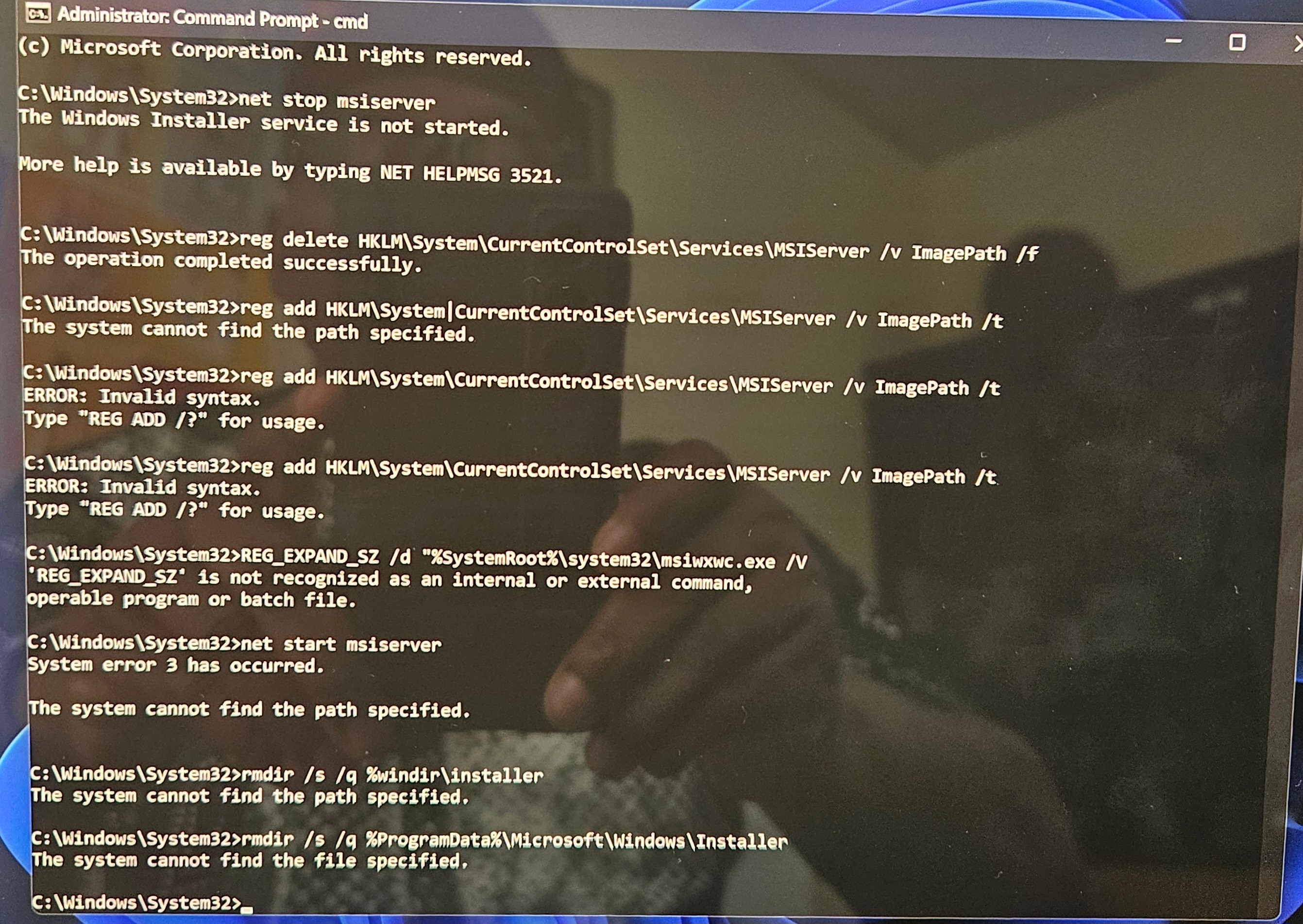reg add HKLM\System\CurrentControlSet\Services\MSIServer /v ImagePath /t REG_EXPAND_SZ /d "%SystemRoot%\system32\msiexec.exe /V"