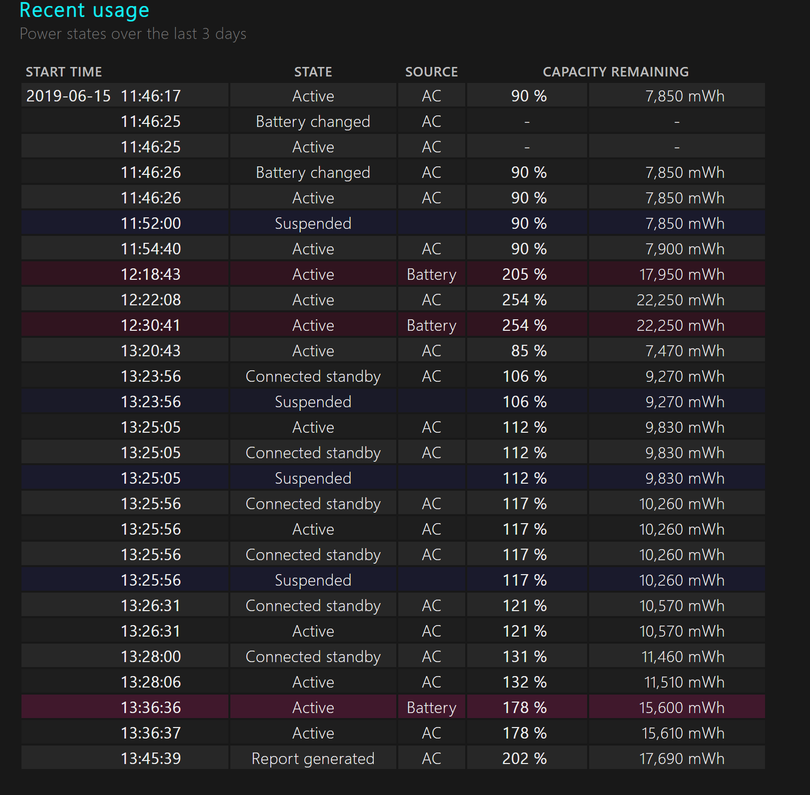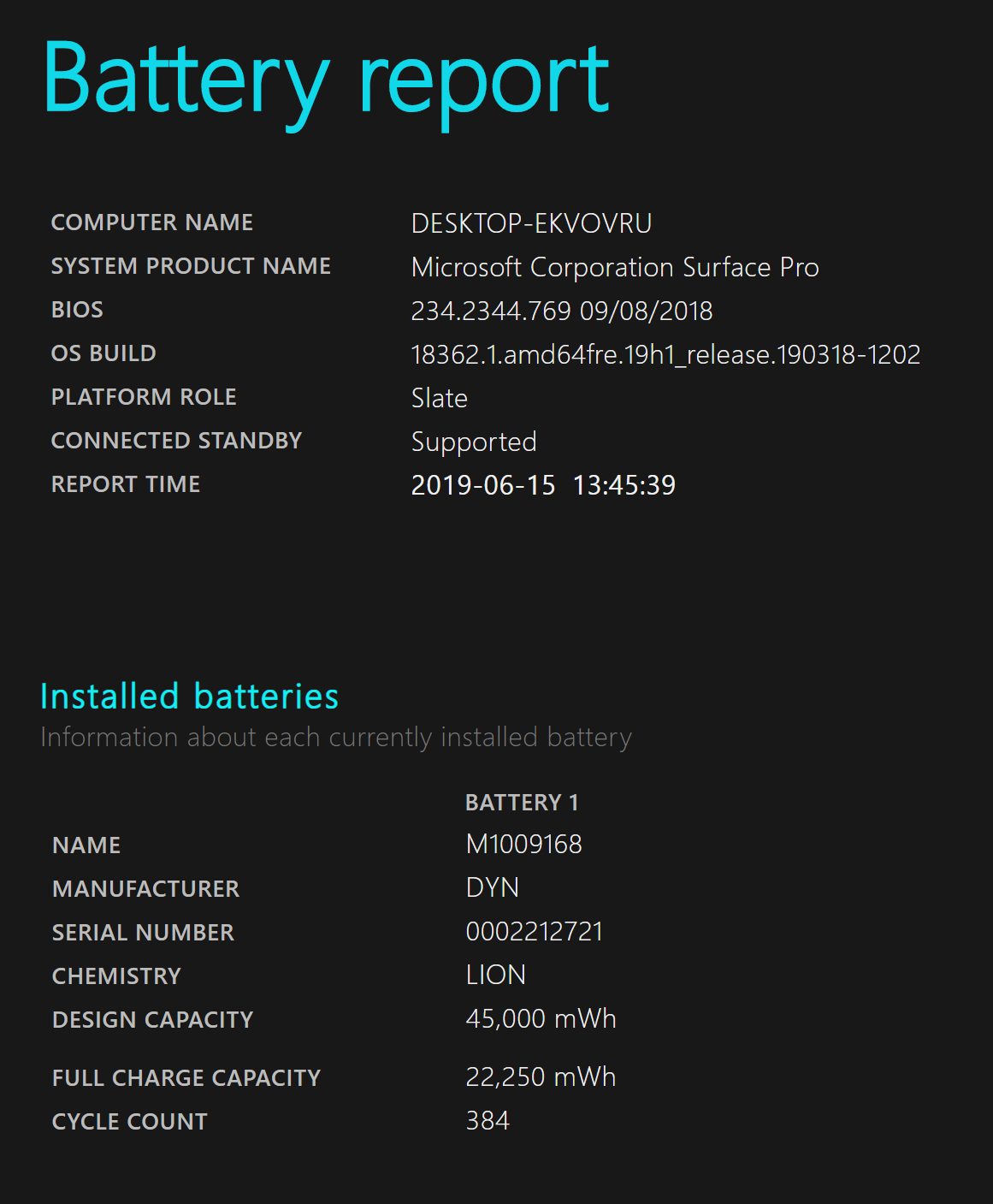 Screenshots of my Battery Report: (Not fully charge as of now, but it seems full at 22,xxx.