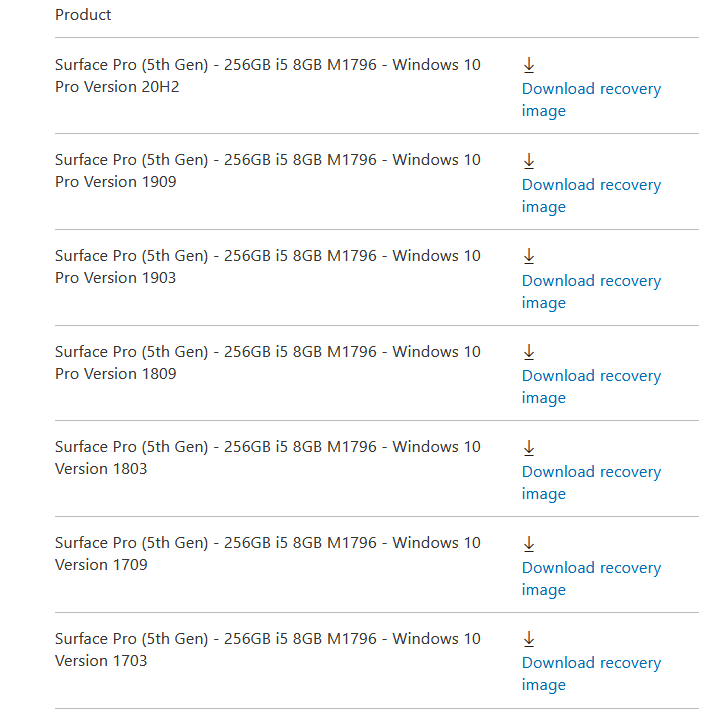 First try: Surface Pro (5th Gen) - 256GB i5 8GB M1796 - Windows 10 Pro Version 20H2