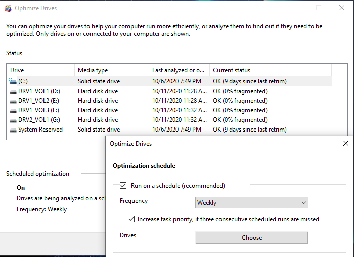 First noticed this in my main system last week running 20H2 (non-insider). Disk Optimization is not running automatically, had about 13 days showing last run, settings are at default to run weekly. Did a manual run back last week.