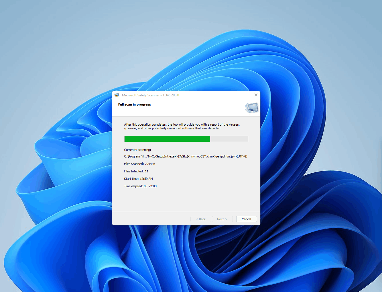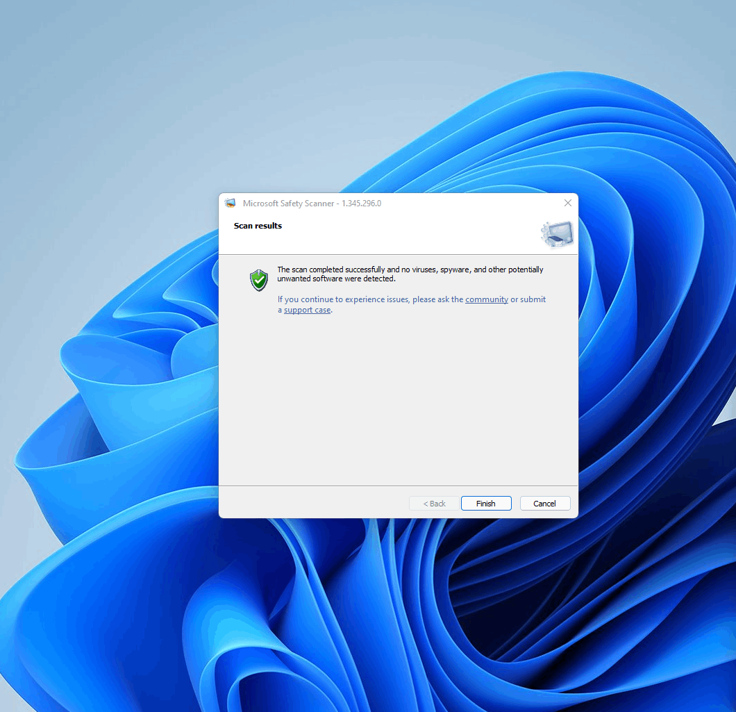 I am trying to run the Microsoft Safety Scanner after updating to Windows 11 and it detects some infected files however it finishes without cleaning up the detections.