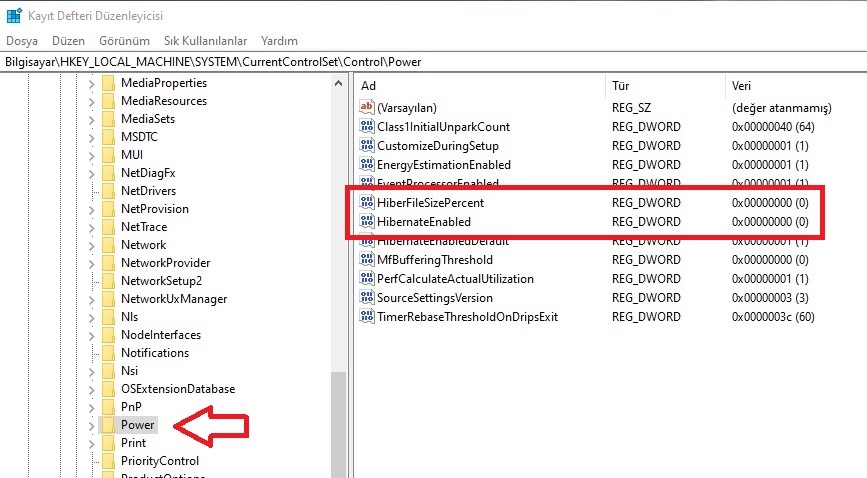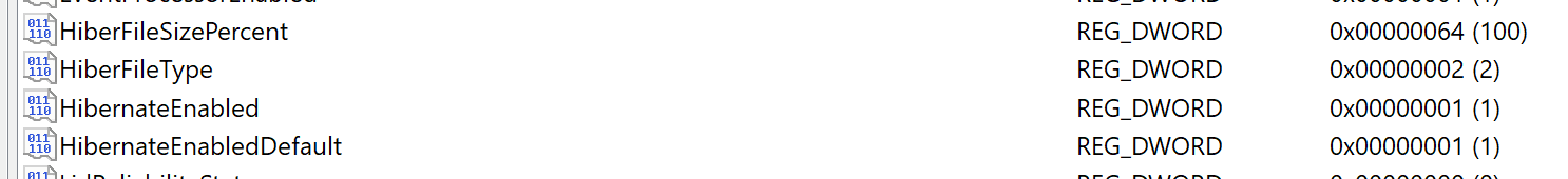 Under this Key, HiberFileSizePercent and HibernateEnabled should not be zero. Mine reads zero because I don't have Hibernate anywhere on this PC.