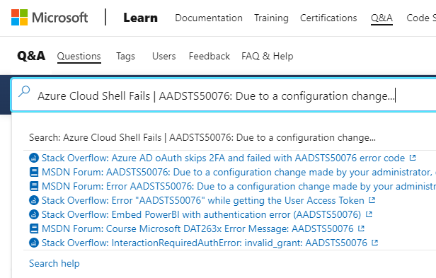 Azure Cloud Shell - Authentication - Azure Cloud Shell Fails | AADSTS50076: Due to a configuration change...