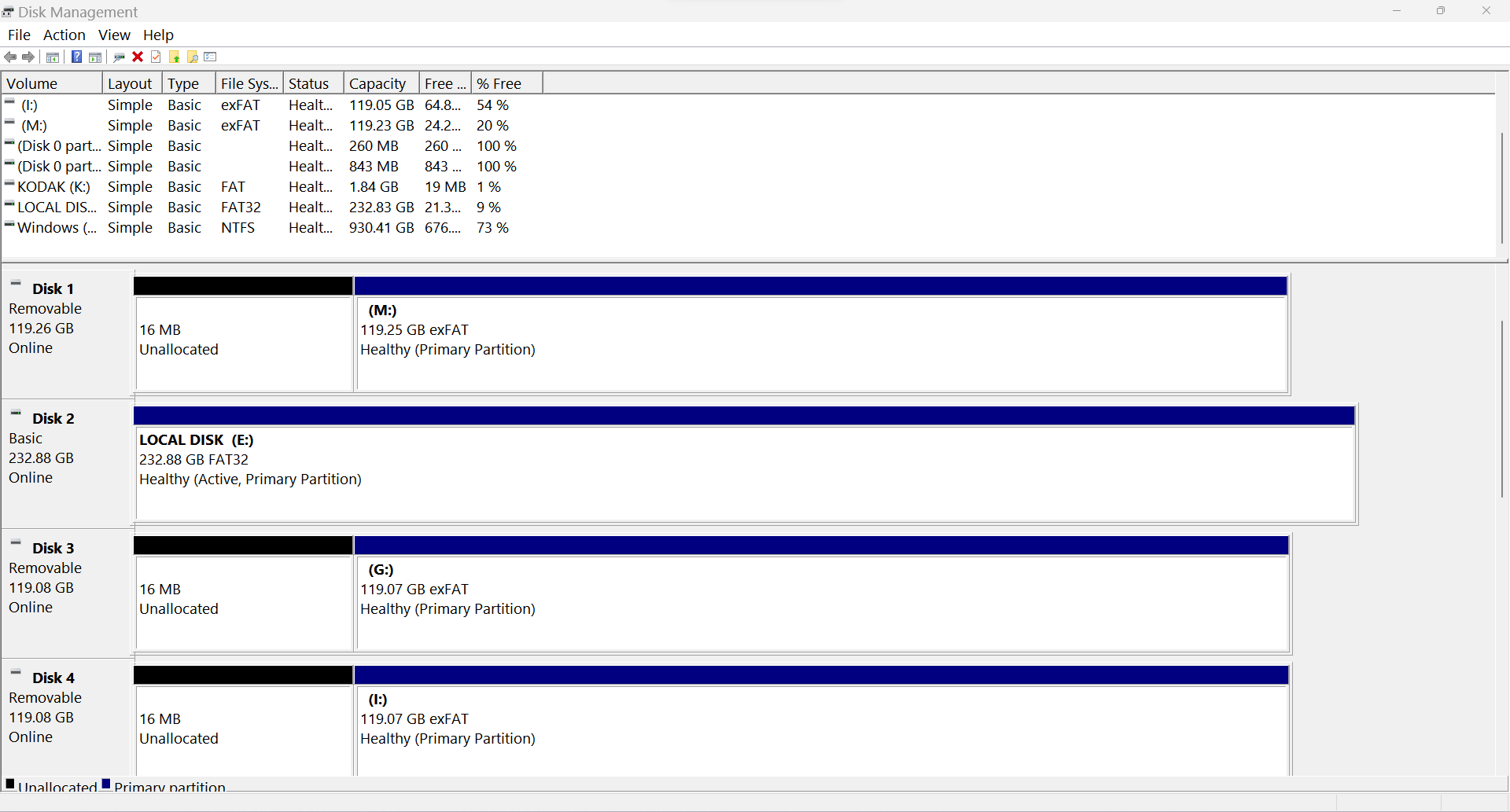 Open Disk Management by typing in diskmgmt.msc in Run Dialog box.