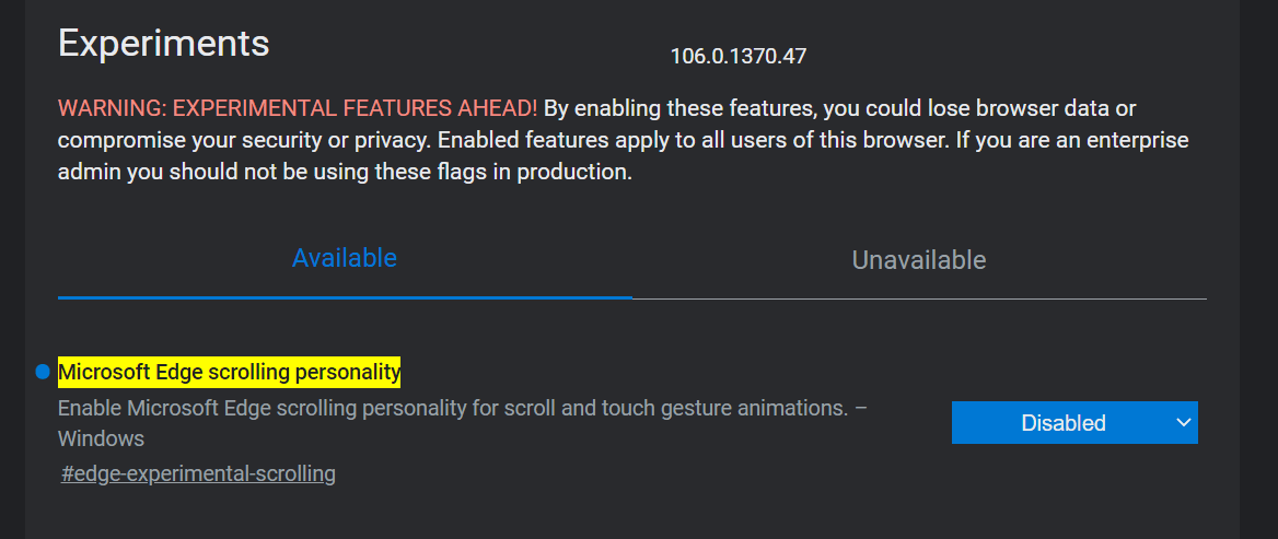 You can go to this experimental feature path and set it as Disabled to see if it helps