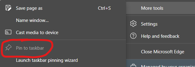 I wrote a simple html file and saved it to my local drive. I can open this file in Edge just fine, but Edge won't let me pin it to the Windows taskbar.