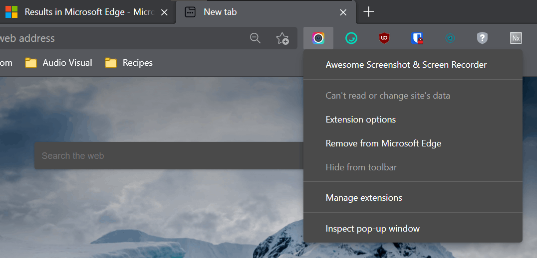 Once downloaded and installed restart your computer and try to hide the Edge Extensions.