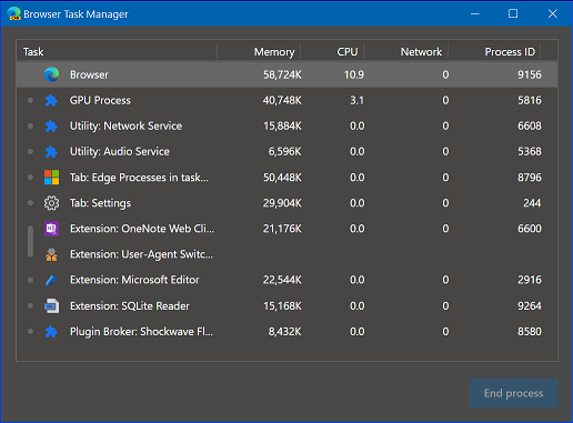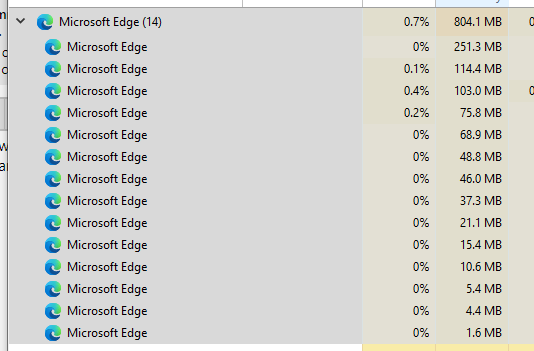 Think of it this way, the main Edge program is one process, the audio is another, the video is another, the search another and each tab you have open will also have its own process, just opening Edge will spawn at least 6 processes . . .