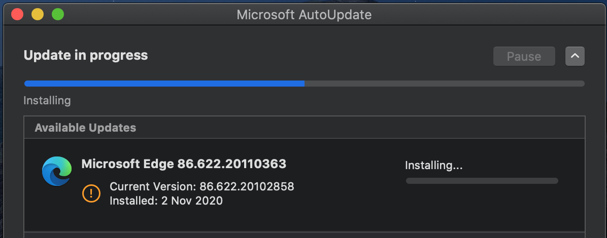 I open the Microsoft AutoUpdate app and there are available updates (either for edge or office apps), I will click update and the update will download but gets stuck on installing. I’ve uninstalled and reinstalled the Microsoft AutoUpdate app version 4.29