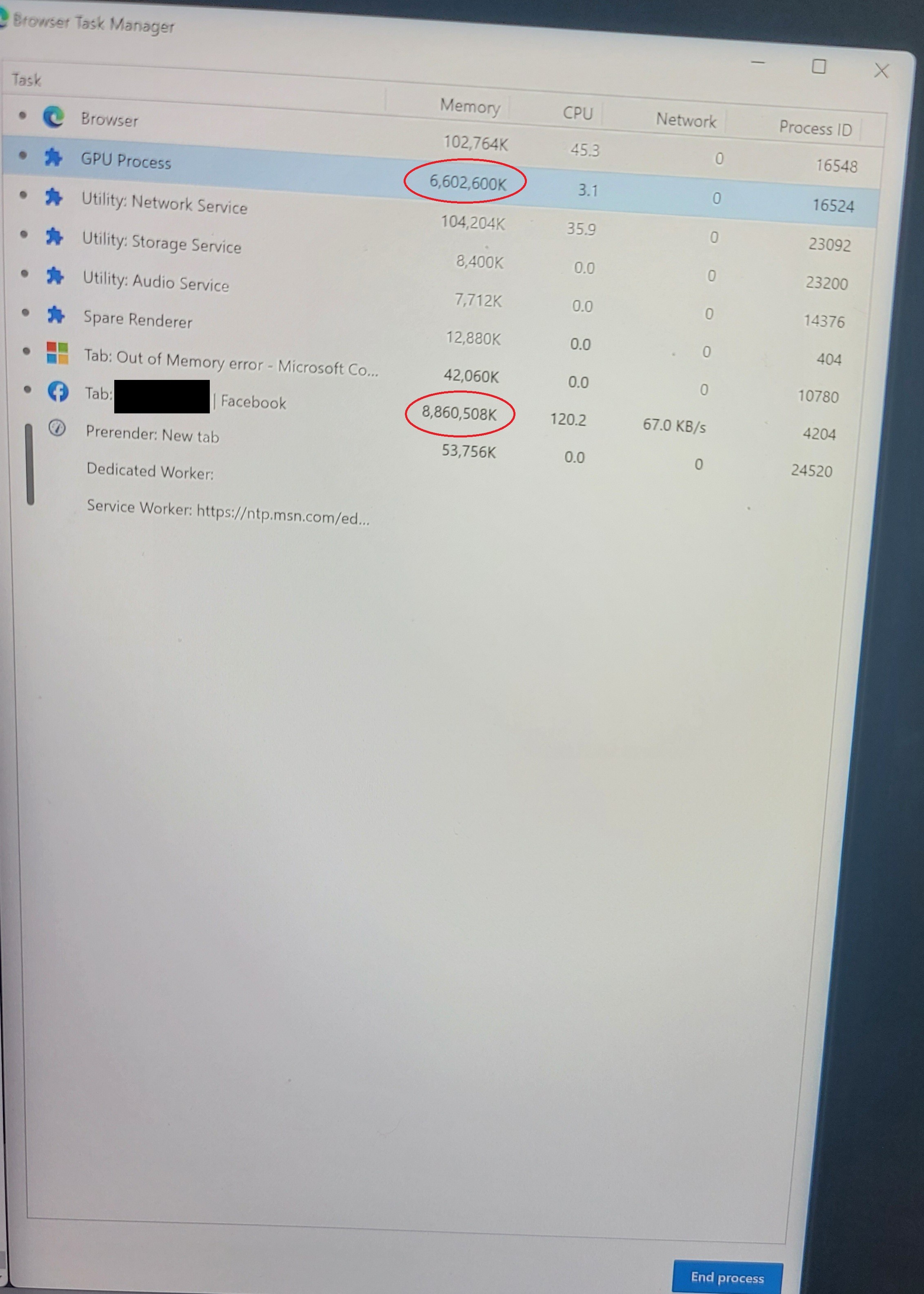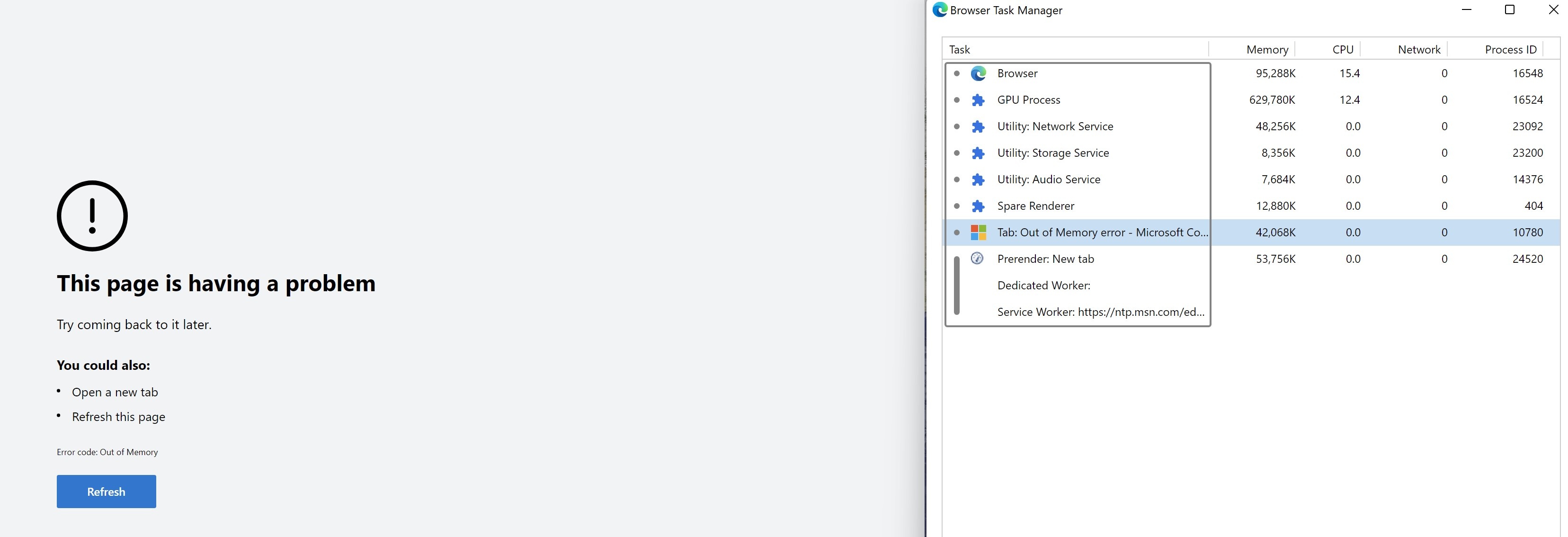 Hi , I am facing a problem , My laptop specs are 24gb ddr4 ram , ryzen 7 4800h. Though having plenty of memory edge after using 2400mb of ram or after opening of 25th tab crashes and shows out of memory error. pls. help