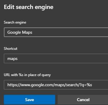 If I understand correctly, you want to enter maps xxxx in the search bar to open Google Maps and search for the keyword, right? We tried it and found that the error might be due to the incorrect address. Our settings are as follows, you can refer to them. We tested and it should work correctly.
