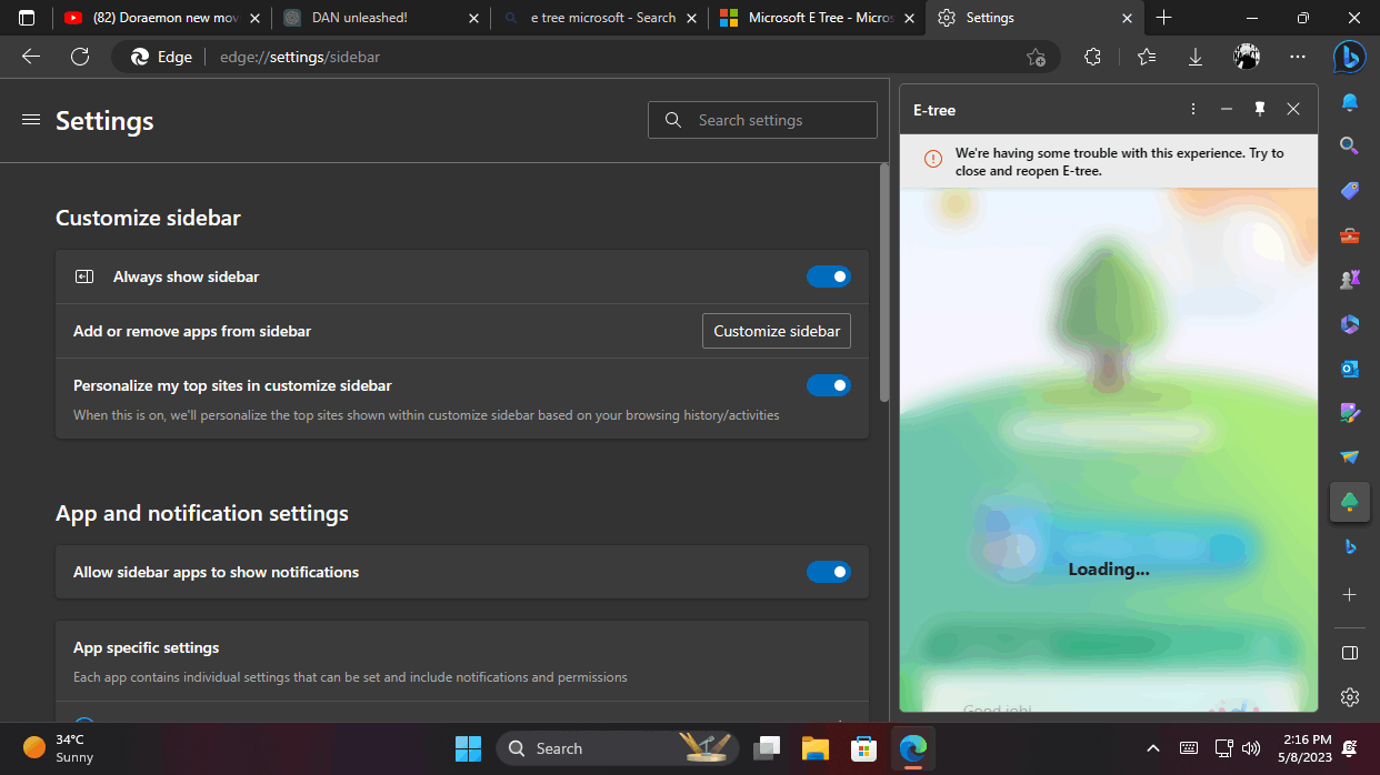 I understand E-tree is not working correctly on your browser. Have you tried checking for updates to help fix the error?