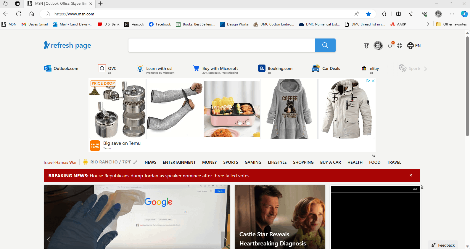Also I prefer Google as my default browser with MSN.com as a bookmark. I can't find a way to set the MSN new tab as a bookmark.