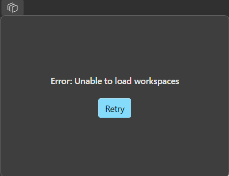 I've been using workspaces for more than 3 months for various projects, and then suddenly it stopped working. One day, I attempted to open them and received the error "Unable to load workspaces.". Then, I googled the problem and tried the existing solutions.