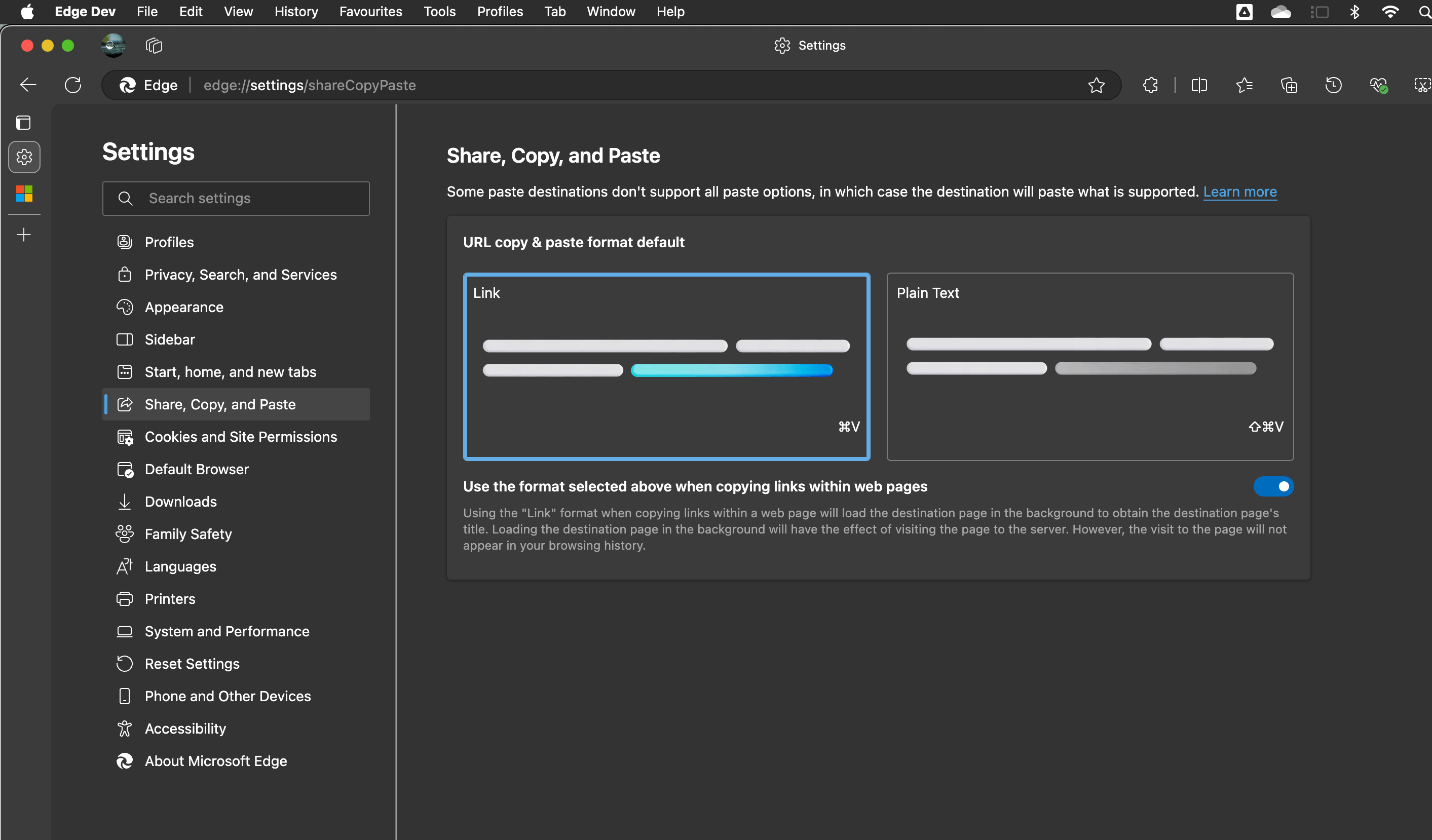 Click 3 dots Edge Settings > Share, Copy, and Paste.