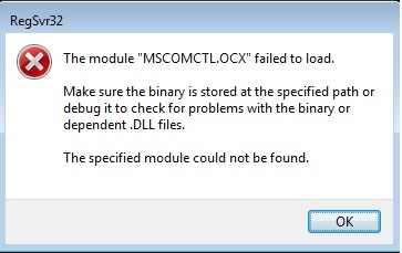 Component 'MSCOMCTL.OCX' or one of its dependencies not correctly registered: a file is missing or invalid.