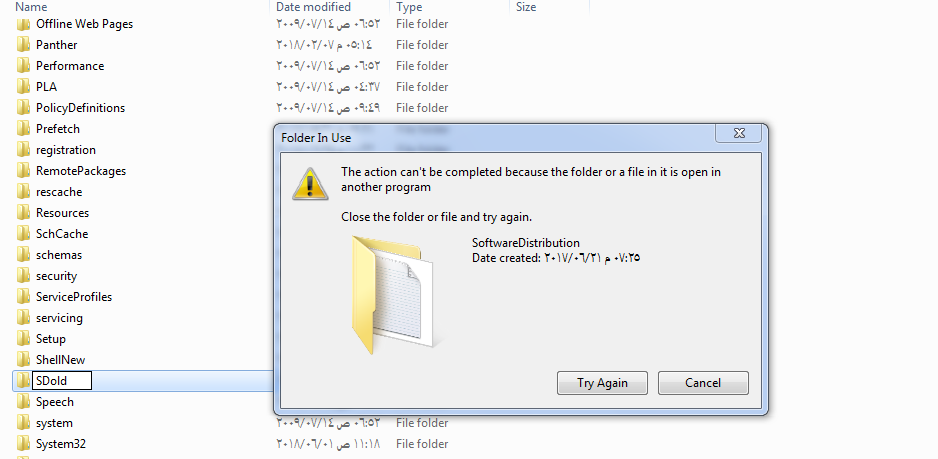 when i rename the folder to (SDold) It told me that the folder Is open and I must close it before rename it
