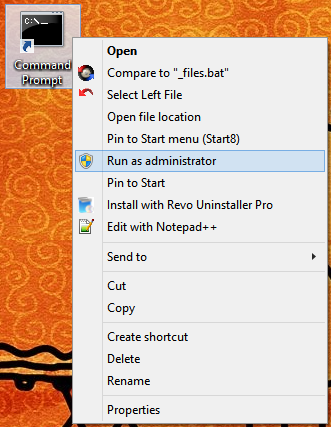 First, I create a Command Prompt shortcut (cmd.exe) on my desktop then I right-click it and select