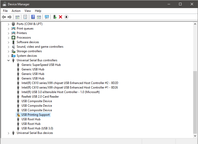 Note: Click Show hidden devices on the View menu in Device Manager before you can see devices that are not connected to the computer.