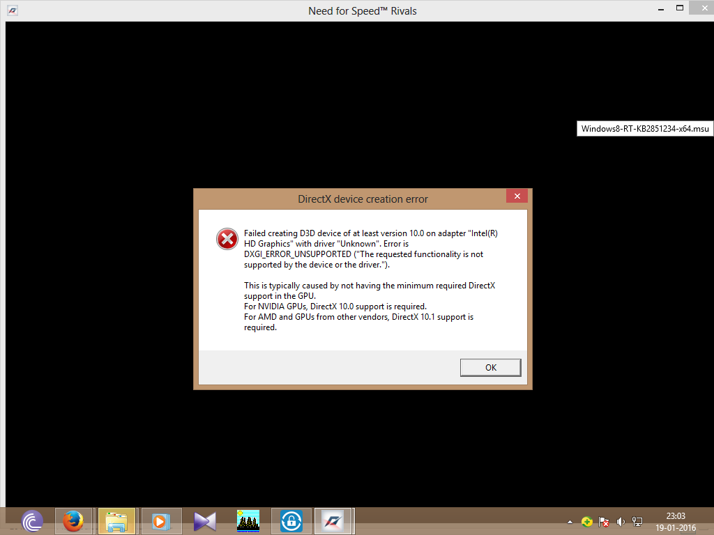 With the issue description, I understand that while launching a game you get an error: DirectX device creation error” on your Windows 8 machine. I will certainly help you in getting this fixed.