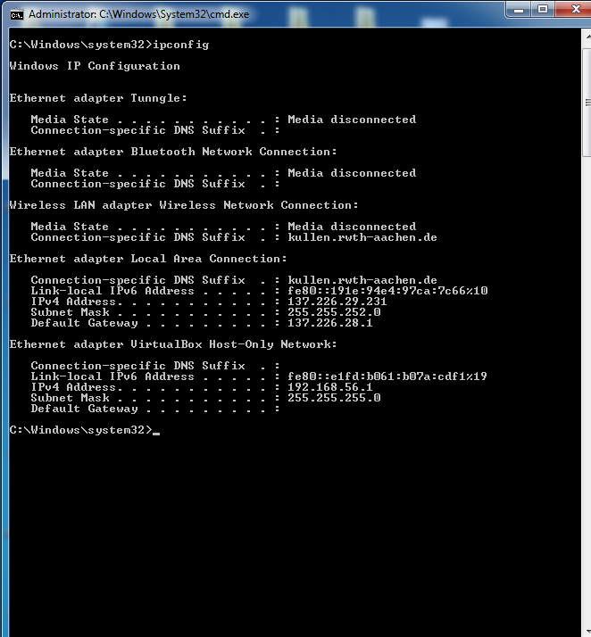 Default gateway: 137.226.28.1 7. Click OK. 8. Open a Command Prompt with cmd.exe. 9. Type this command and press Enter:
