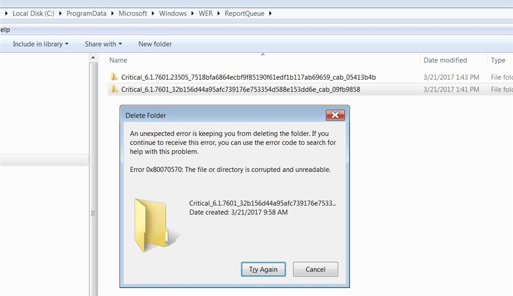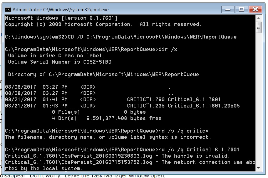 rd \."c:\ProgramData\Microsoft\Windows\WER\ReportQueue\Critical_6.1.7601" /s /q