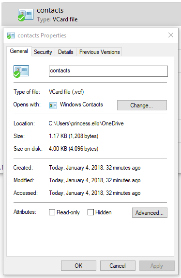 However, if you change the associated program with the .vcf file to the People app, it'll show VCF file instead, as can be seen below: