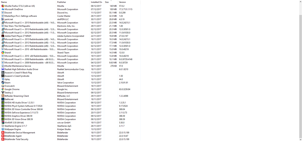 Recently I have reset windows and completely reinstalled it and in my fresh reinstall the size of some of my programs is nolonger displayed in the programs and features area. For example before the reset the size of steam and all steam games installed was displayed allowing me to easily figure out what games were consuming the most space.
