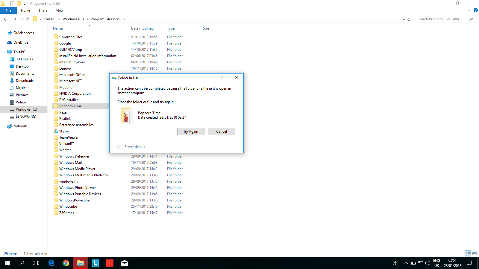 installed the popcorn time program....firstly it was okay but when i did a restart to my computer the shortcut on the desktop was disappeared. i tried to uninstall it from the program and features on control panel but was not there.. How can i delete the file