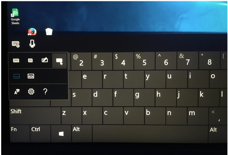 2017-10-18T05:14:04+00:00 Launch the on screen keyboard, then click the gear icon in the top left hand corner next to the microphone icon, then click or tap the fourth icon to the right. See screenshot