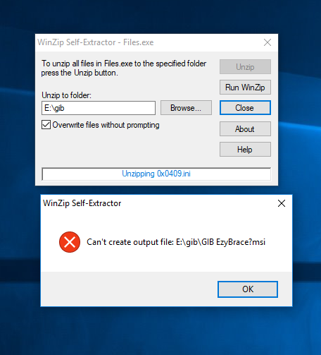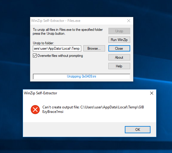 When I try to install a program (.exe) it runs winzip self-extractor which tries to create a file in C:\Users\user\AppData\Local\Temp
