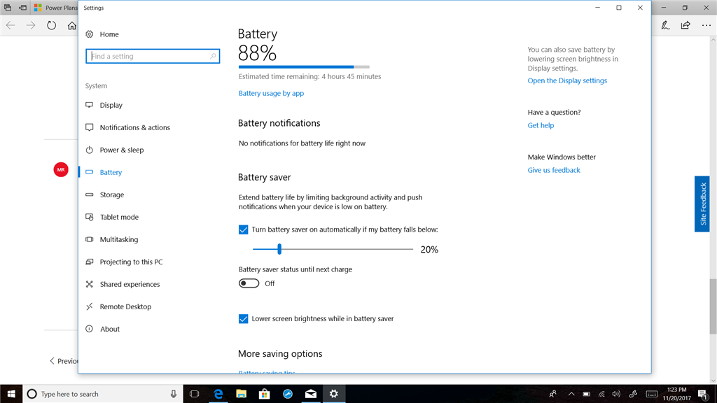 I to did the fall update, I don't have a slider and I don't know where you're seeing It? Here's what I have when I click on the battery in the system tray and when I click on it a second time in the second pic.