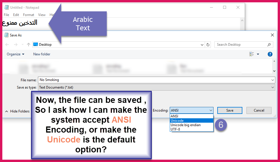 By default the ANSI file type encoding that you can use. Now, you can go to Control Panel > Region > Administrative > language for non-unicode programs > Change system locale > Select the language or countryand then restart your PC).