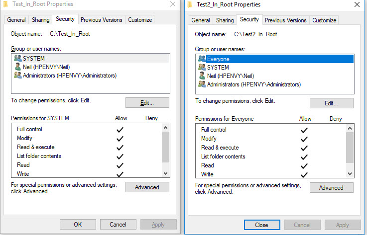 What if you make that shared folder Test like C:\Test and share to every one and see what security settings there is then.