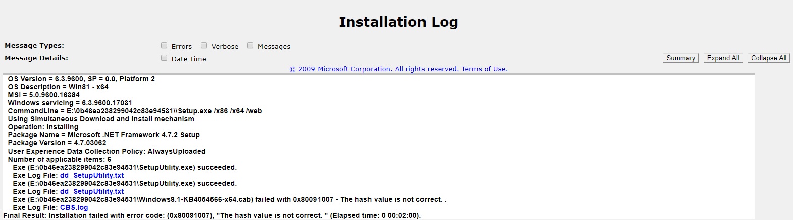 2018-07-10T14:58:36+00:00 The image you posted indicates that it is trying to roll back .net framework. This usually happens when you are trying to install and older version while a newer version is already installed. Have you tried to completely remove .net then install?