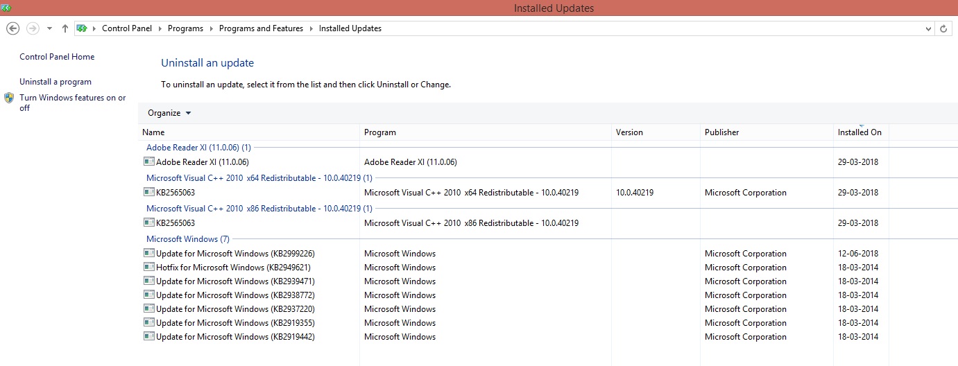 I also checked in "View installed updates" as written above. But I didn't find anything related to Microsoft .NET. Here is what I see there:-