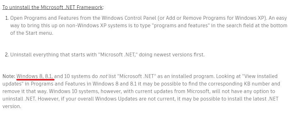 I didn't find any .net framework listed in the "Programs and Features"(from the Windows Control Panel). Your link also says the same for Windows 8.1 as shown below:-