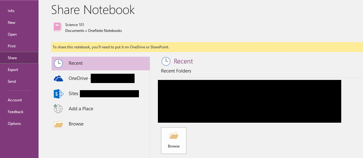 It will alert you that this notebook have to be saved on OneDrive or SharePoint before sharing.