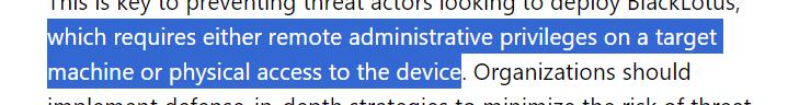 So for the personal user, if no people access your computer physically, you don't worry about an attack from the Black Lotus.