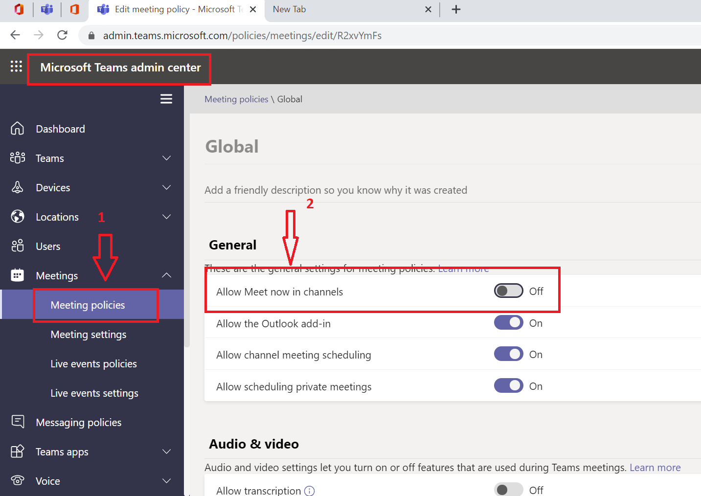 Please refer screenshot from "MS teams admin center" to know the policy details.