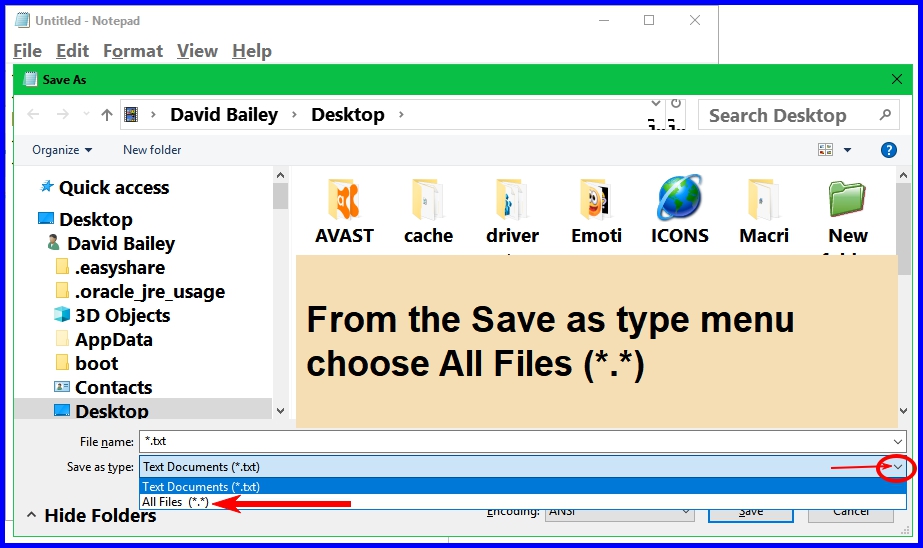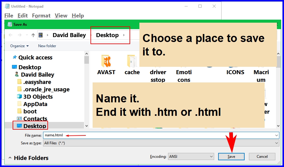 Have you written html code into Notepad & wish to save the file as .htm or .html ?