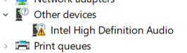 Last night I installed the Cumulative Update KB4464330 on to my HP laptop which is running Windows 10 Version 1809. The install went fine and the laptop came back up. However, when it came back up it had removed/deleted the Intel High Definition Audio device driver as per the following screenshot;