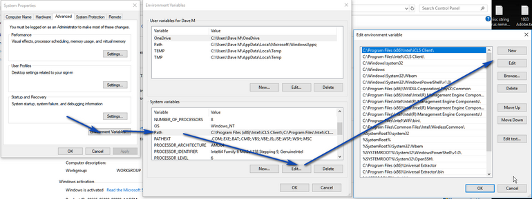 Then highlight the Path variable in the 'System variables' section and click Edit