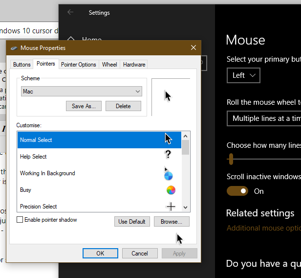 Adjust the Touchpad and mouse settings in Settings > Devices > Mouse/Touchpad checking all settings including the Additonal Mouse Options box - check Settings on all tabs.