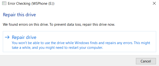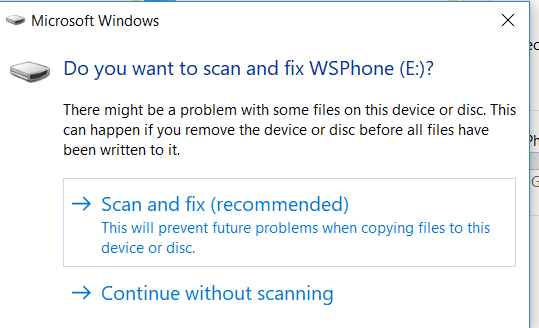 The volume has been successfully checked, but Windows was unable