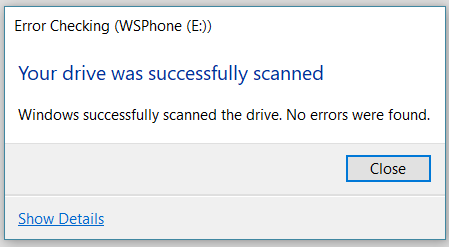 Windows has scanned the file system and found no problems.