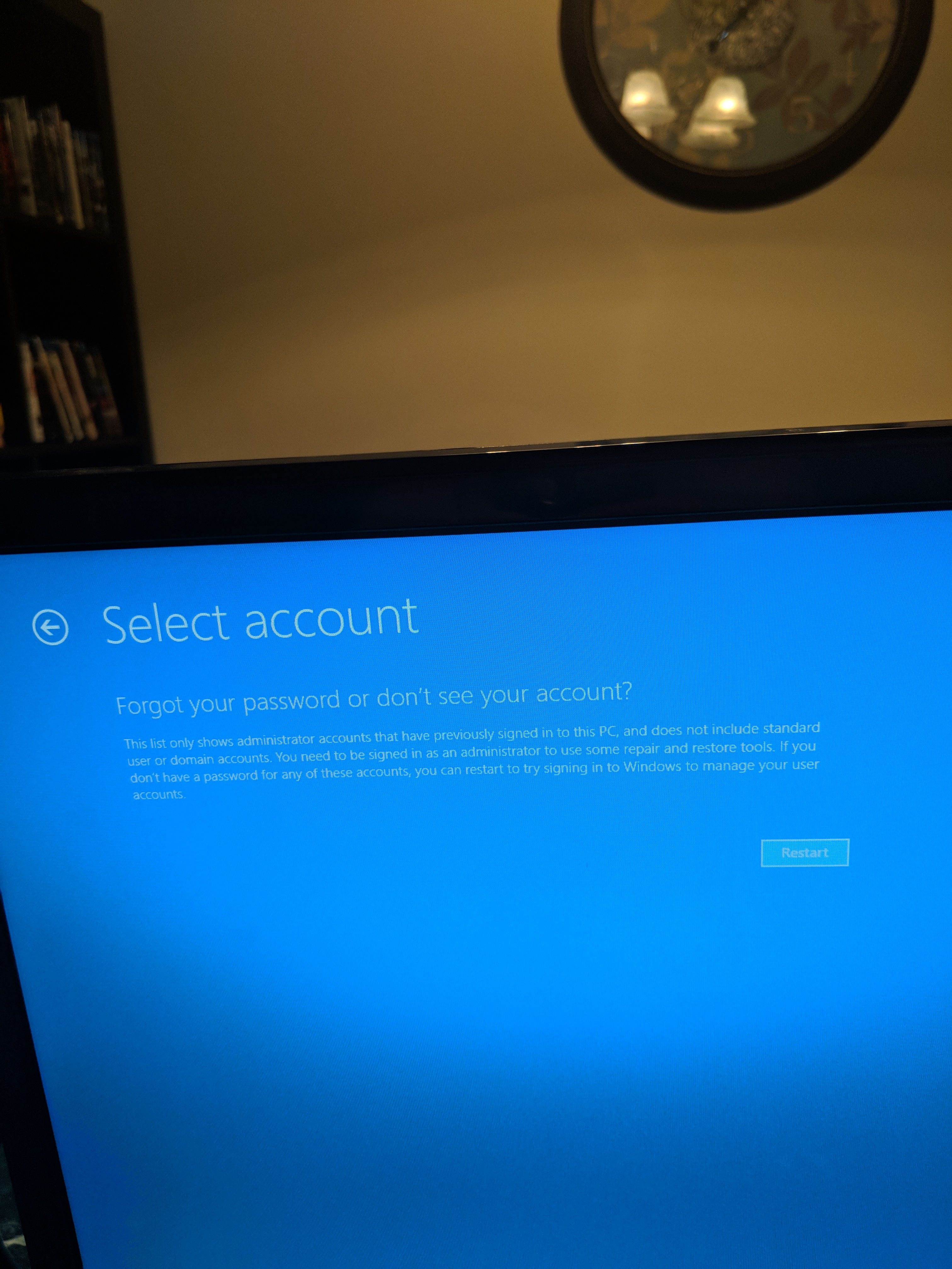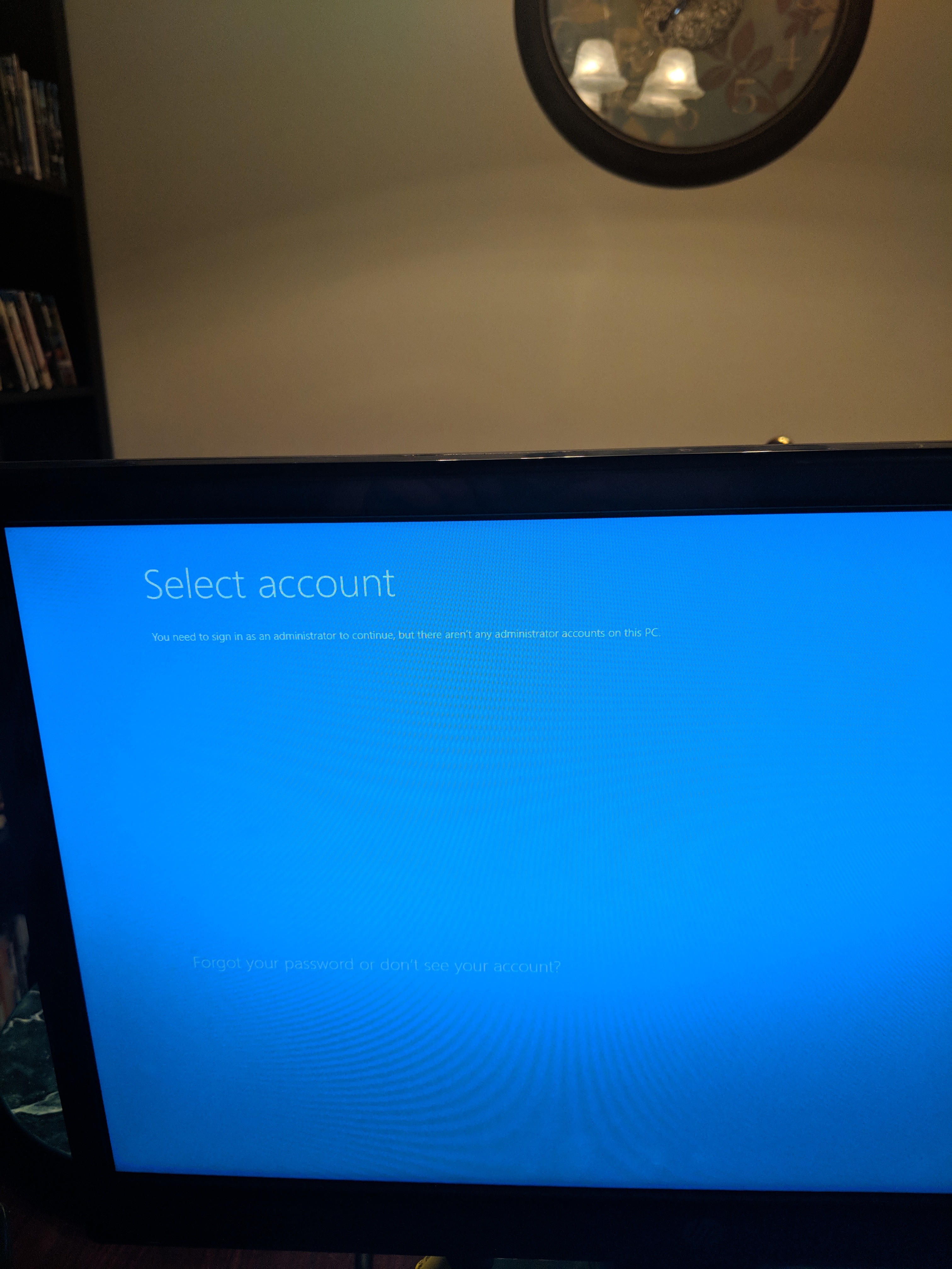 well i get home and a few days pass and i get up the courage to do just that. i boot it up, fully expecting it to go to the login page where ill hit shift+restart and do whatever instructions lead me to setting it back to factory settings
