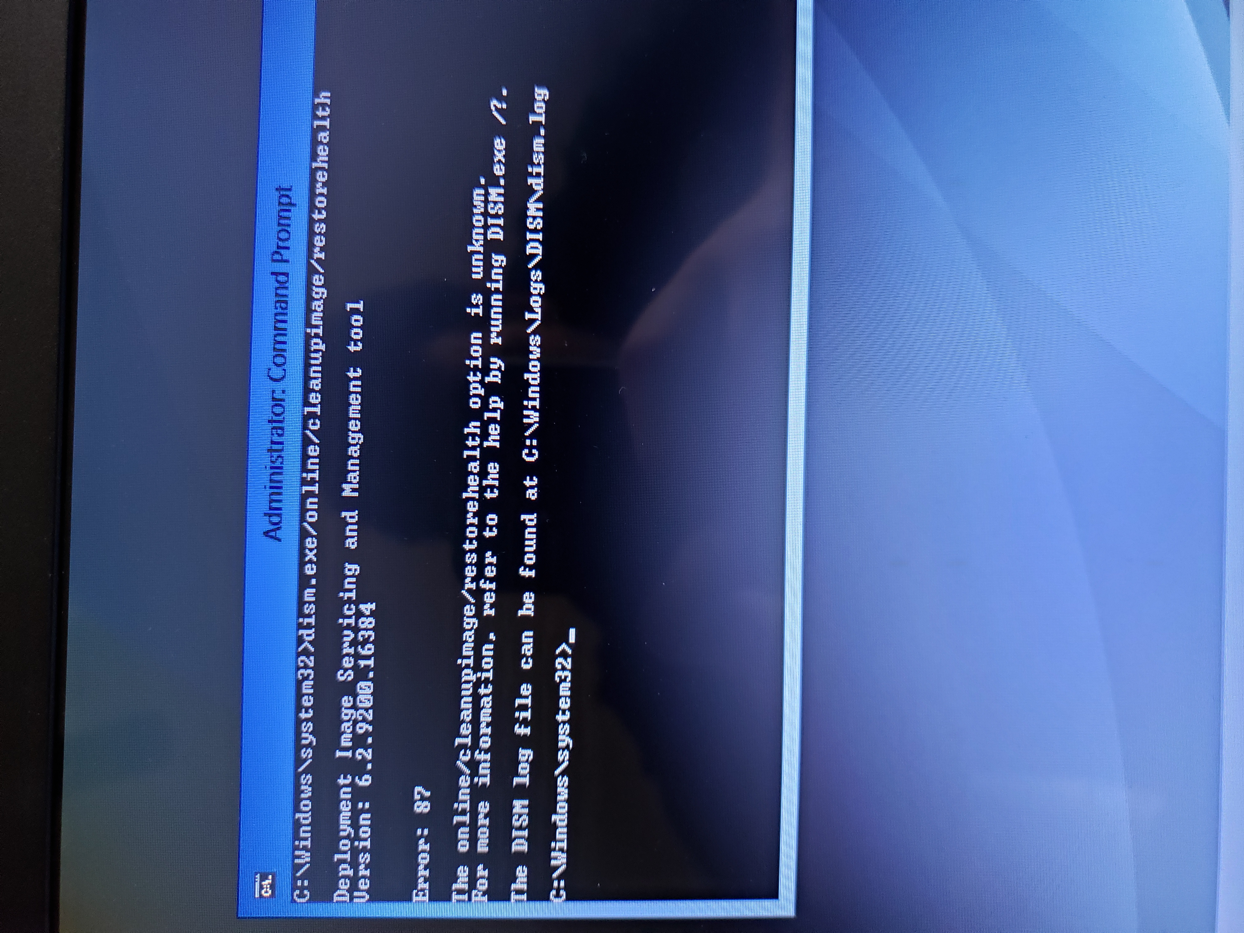 Still shows error 87