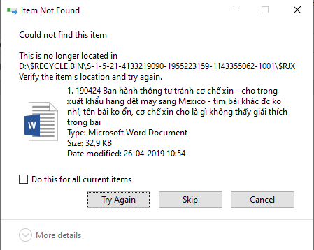 Delete all the permissions, all the recycle.bin(s) on each drive and then Restart Windows.